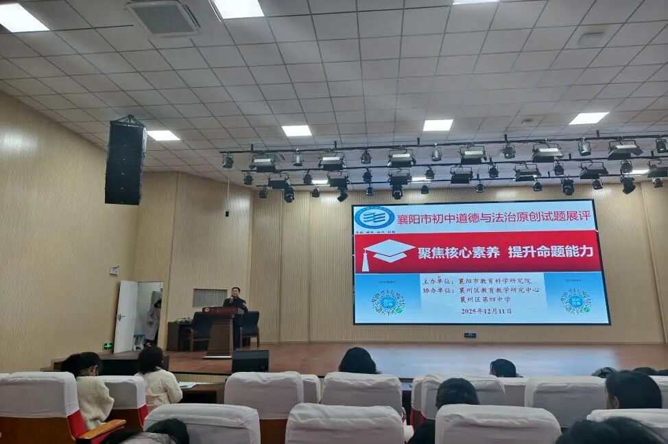 12月11日,由襄阳市教育科学研究院主办、襄州区教育教学研究中心承办的初中道德与法治原创试题展评活动,在襄州区第四中学顺利举行。全市教研员及200余名骨干教师参会。
