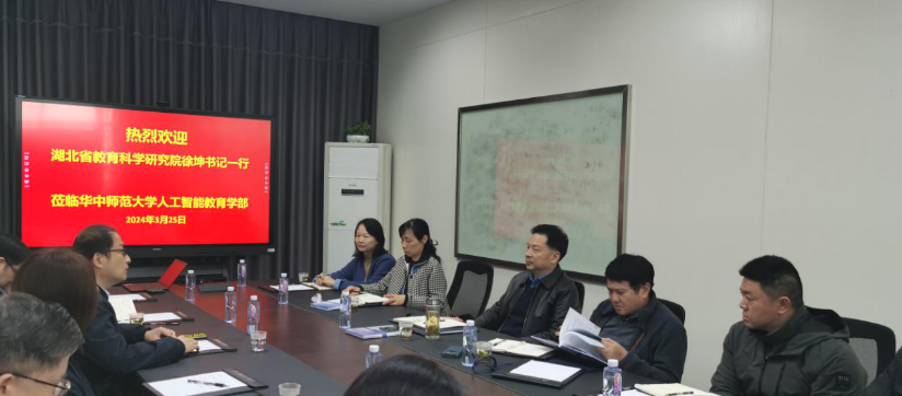 为贯彻落实湖北省教育厅关于教育数字化转型的有关文件要求,推动我院2025年世界数字教育大会筹备的相关工作落地落细,2024年3月25日,省教育科学研究院纪委书记徐坤带领职教所、教师发展研究中心、综合办等部门同志,赴华中师范大学人工智能教育学部调研学习。